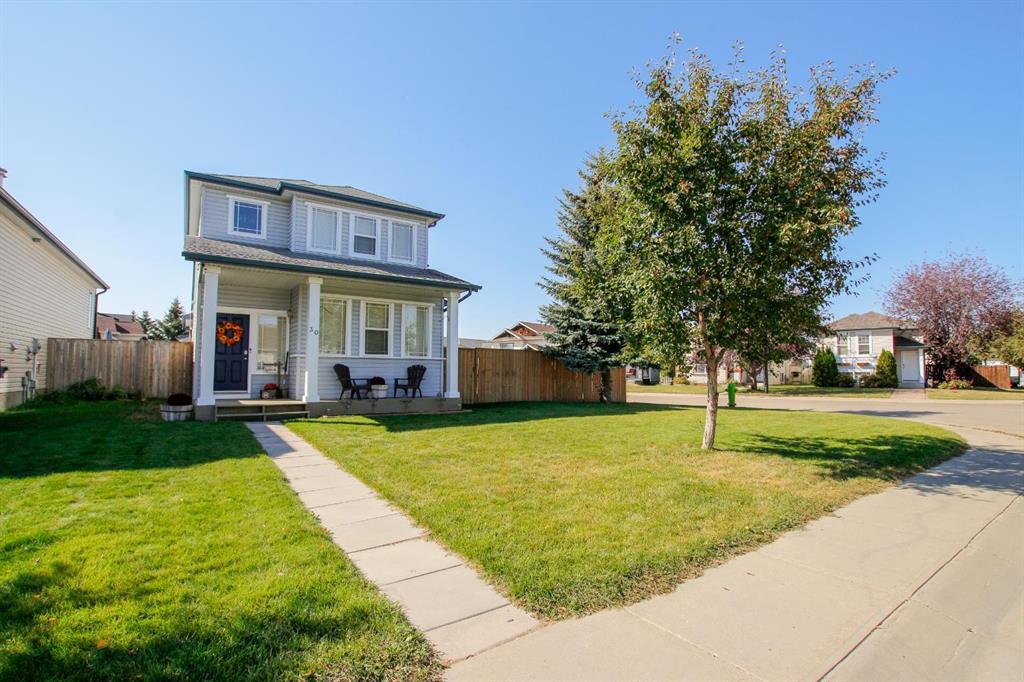 4 BEDROOM, 4 BATHROOM 2-STOREY WITH OVER 1540 SQ. FT. ABOVE GRADE ~ FULLY FINISHED BASEMENT ~ 24' X 22' DETACHED GARAGE ~ CORNER LOT WITH A WEST FACING BACKYARD ~ Covered front veranda that spans the front of the home welcomes you ~ The welcoming foyer has tile flooring and over 18' high ceilings that open to the upper level ~ The living room features large windows that fill the space with natural light and a cozy gas fireplace with stone details and a TV mount above ~ The kitchen offers a functional layout with plenty of dark stained cabinets, ample counter space including a massive island with an eating bar, full tile backsplash and a walk in corner pantry ~ 2 piece main floor bath ~ Easily entertain guests in the spacious dining room with an abundance of large windows and garden door access to the covered deck and backyard ~ The conveniently located main floor primary bedroom can easily accommodate a king size bed plus multiple pieces of furniture, has a second garden door to the covered deck, a walk in closet with built in organizers and a 4 piece ensuite bathroom ~ Open staircase with more large windows offering natural light leads to the upper level bonus room ~ 2 generous size bedrooms with ample closet space share a 4 piece bathroom with an oversized vanity and built in linen shelving ~ The fully finished basement has a huge family room, 4th bedroom, 4 piece bathroom, laundry with a sink and tons of storage throughout ~ Other great features include; Wired for sound with speakers throughout, central vacuum with kitchen kick pan ~ The sunny west facing backyard is landscaped, fully fenced and has access to the side street and back alley ~ 24' long x 22' wide double detached garage is insulated and finished with O.S.B. ~ Excellent location; steps to multiple parks, playgrounds and walking trails, walking distance to multiple schools, rec centres and tons of shopping, dining, and all other amenities ~ Move in ready!